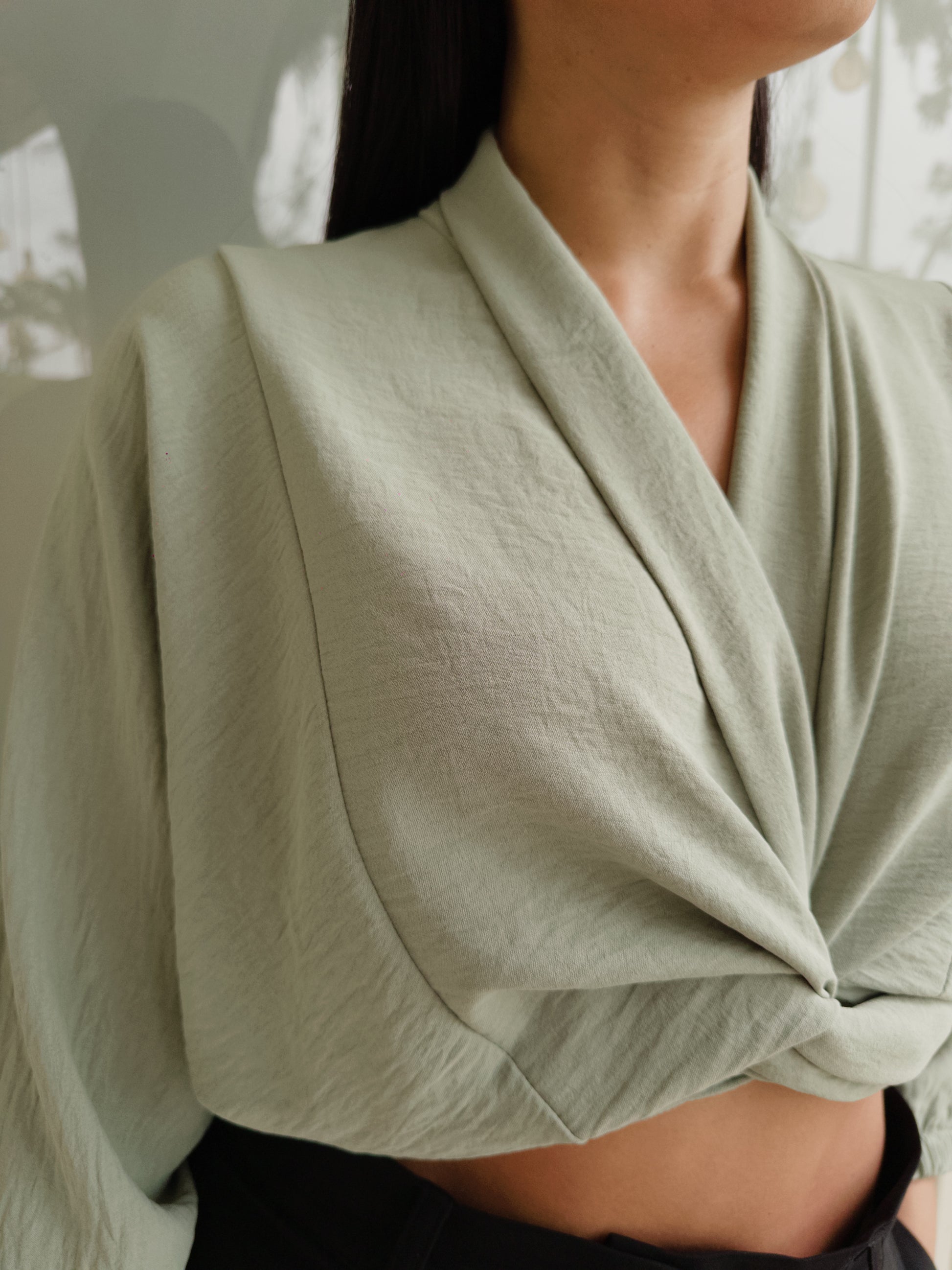 - Blusa Gaby en color Verde en tela Seda con textura