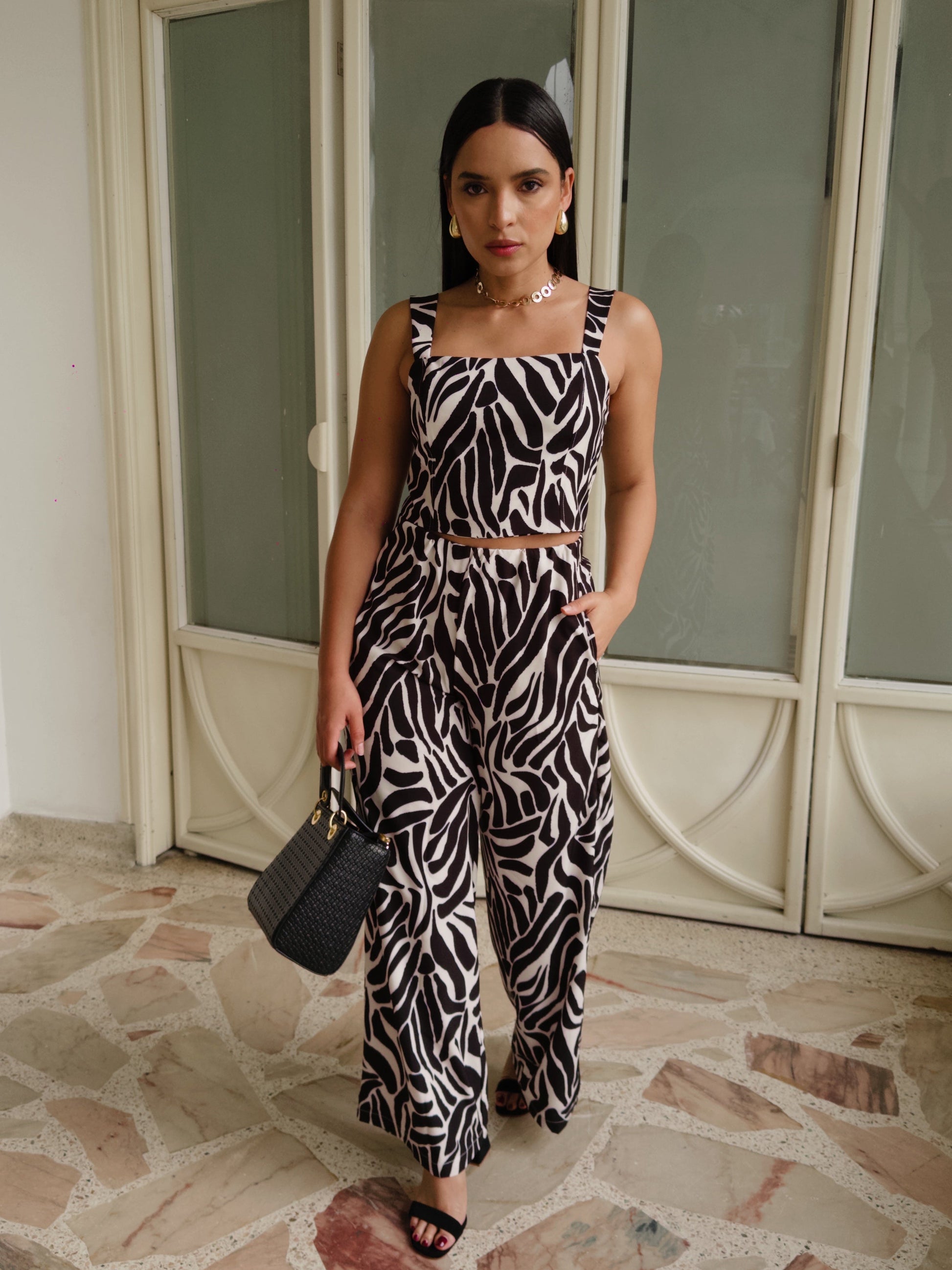- Pantalon Milano en seda estampado con textura ligera y sutil brillo